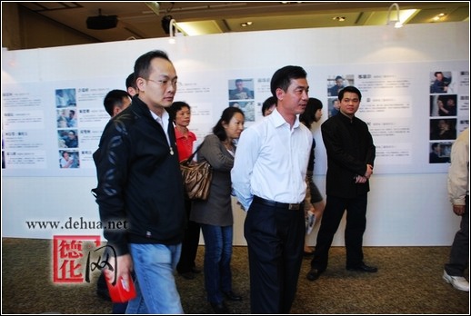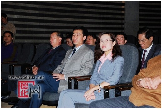 縣長(zhǎng)李輝躍、副調(diào)研員黃發(fā)建、新光三越文教基金會(huì)執(zhí)行長(zhǎng)洪炳棟、臺(tái)灣工藝研究所長(zhǎng)林正儀、臺(tái)灣陶藝協(xié)會(huì)理事長(zhǎng)蘇立正、德化陶瓷文化臺(tái)灣參訪團(tuán)成員和臺(tái)灣業(yè)界、商界的部分知名人士以及臺(tái)灣各大媒體記者出席開(kāi)幕盛典,李輝躍在開(kāi)幕式上發(fā)表了熱情洋溢的講話,介紹了德化的概況和陶瓷文化歷史;李輝躍、洪炳棟等為德化白瓷鑒賞展揭幕。盛典儀式還邀請(qǐng)了臺(tái)灣知名樂(lè)隊(duì)前來(lái)演奏,烘托優(yōu)雅氣氛。