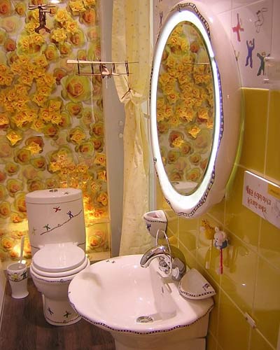一般概念中,衛(wèi)浴間的組成元素也就是浴缸、馬桶、洗面臺,而今,一些流行元素也進(jìn)入了衛(wèi)浴間,花瓶、裝飾畫、電視機(jī)甚至酒吧都搬進(jìn)了衛(wèi)浴間。許多人把原來呆在床上或沙發(fā)上的時間,改為泡在浴缸里,旁邊花花綠綠的雜志一堆一摞高,還可以選好角度看電視。洗著泡泡浴,像唐老鴨似的歡快地唱著歌,你赤裸裸的時刻,也就是你最解脫的時刻。