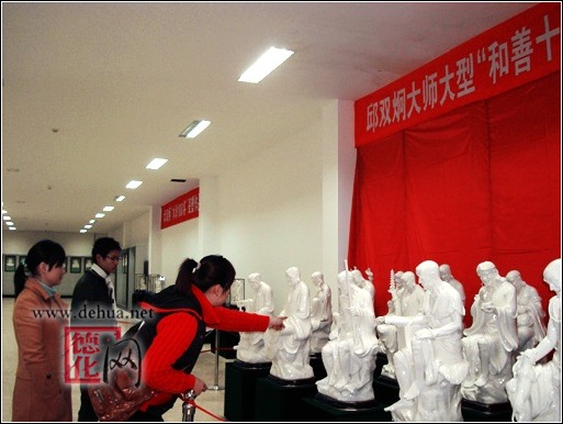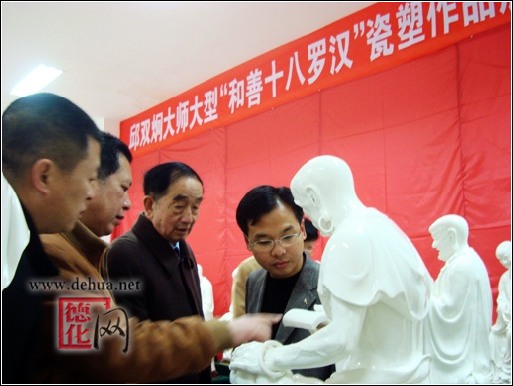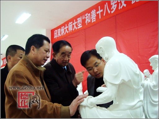 【德化網(wǎng) 訊】“中國(guó)白”大型雕塑《和善十八羅漢》是德化縣鳳凰陶瓷雕塑研究所所長(zhǎng)(高級(jí)工藝美術(shù)師、福建省工藝美術(shù)大師)邱雙炯先生應(yīng)邀為2009年三月在江蘇省無(wú)錫靈山召開(kāi)的世界佛教論壇大會(huì)“天花爛漫”展覽項(xiàng)目參展而作。歷時(shí)一年多時(shí)間煉制完成,于牛年的正月初一至十五(2009.1.26-2.09)期間在德化陶瓷博物館隆重推出展覽。市民們可以在此期間前往參觀。