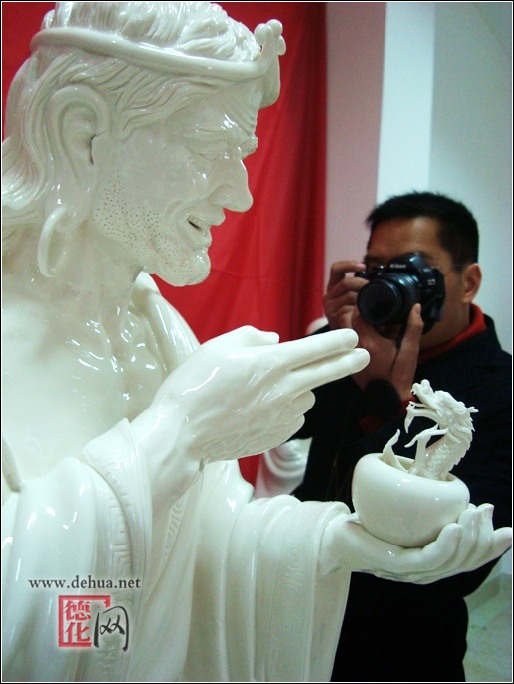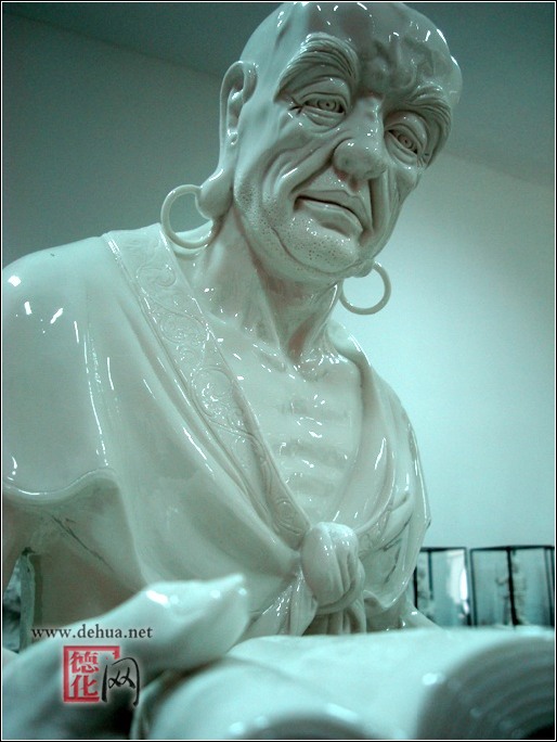 此次展出的“和善十八羅漢”作品選用被譽(yù)為“中國(guó)白”純凈上乘瓷土為原料,其配方經(jīng)無(wú)數(shù)次研究實(shí)驗(yàn),克服了大體積的中國(guó)白瓷在高溫?zé)捴七^(guò)程中易開(kāi)裂軟塌變形等困難,精心設(shè)計(jì)、設(shè)計(jì)、精雕細(xì)刻并經(jīng)1300度以上高溫煅燒而成。作品高約1米左右,重100多斤,體量較大,造型各異,質(zhì)地潔白無(wú)瑕,晶瑩剔透,;潭雀,瓷質(zhì)堅(jiān)實(shí)不吸水不變質(zhì),這是德化縣瓷壇史上的又項(xiàng)突破,打破以往外界認(rèn)為“德化陶瓷無(wú)大器”的看法。