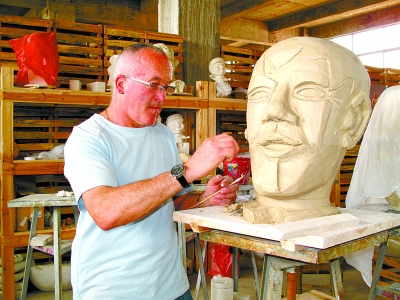 在工作營(yíng)內(nèi),有一張臉笑得十分燦爛,這座瓷雕名為“笑臉”,他是3月份從上海來(lái)這里的法國(guó)雕塑家伊漢朗的“自雕像”。