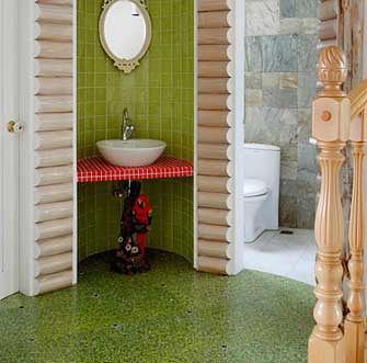 化妝區(qū)的鏡子與洗浴區(qū)的鏡子不同,規(guī)格較小,而且相對更精致些。洗漱后直接在此化妝整理儀容,不必返回臥室的梳妝臺前。