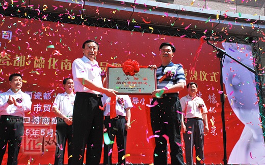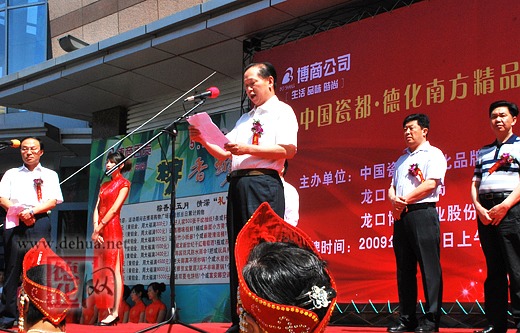縣委常委、宣傳部部長(zhǎng)涂健圻、縣政府副調(diào)研員黃發(fā)建、煙臺(tái)龍口市副市長(zhǎng)呂常厚等出席“中國(guó)瓷都·德化”——南方精品煙臺(tái)營(yíng)銷中心授牌儀式,涂健圻向營(yíng)銷中心授牌、黃發(fā)建在授牌儀式上致辭,并為南方精品煙臺(tái)營(yíng)銷中心剪彩、授牌儀式上德化縣與龍口市還互贈(zèng)了禮品。龍口市電視臺(tái)、《今日龍口》報(bào)就當(dāng)天的授牌儀式進(jìn)行了報(bào)道。