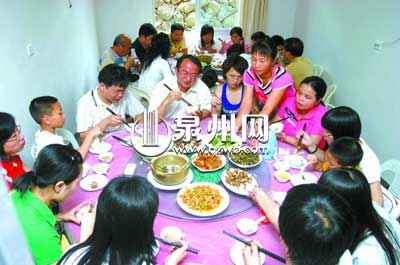 中午,大家在岱仙瀑布檢票口附近的岱仙餐館就餐。每桌豐盛的八菜兩湯,讓讀者們品嘗到了德化的特色農(nóng)家菜肴。“我很少吃到正宗的農(nóng)家菜肴,尤其是有機蔬菜,這里的菜味道真的很不錯,尤其是苦菜排骨湯,很清,可以消暑。”第一次品嘗到特色農(nóng)家菜的洪小姐有感而發(fā)。