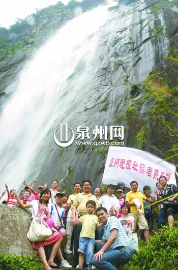 德化岱仙瀑布風(fēng)景區(qū)內(nèi),讀者們懷著一種莫名的興奮跟著導(dǎo)游小許往景區(qū)內(nèi)行進,山道旁的竹林顯得格外茂密,小許手扶一株高聳挺拔的竹子,提問道:“你們猜猜這竹子是雌的還是雄的?”讀者們個個面露難色。