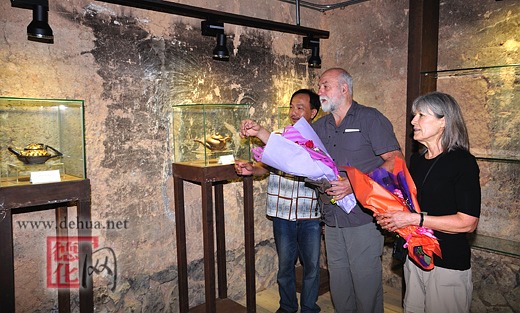7月7日,新西蘭奧克蘭陶瓷協(xié)會(huì)主席PTEER LANGE率領(lǐng)陶藝家一行到德化月記窯開(kāi)展陶瓷藝術(shù)交流和創(chuàng)作,副縣長(zhǎng)嚴(yán)章瑜、文體局局長(zhǎng)陳金殿到場(chǎng)迎接。
