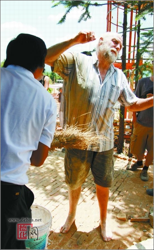 德化縣三班鎮(zhèn)蔡徑村,有一個陶瓷文化創(chuàng)意中心。在這里,不僅可以了解到龍窯古老而神奇的傳統(tǒng)制瓷技藝,而且可以欣賞400多年前的清代古窯址,吸引了許多國內(nèi)外陶藝專家前來參觀。7月初,新西蘭奧克蘭陶協(xié)主席彼得·朗伊及其他9位陶瓷藝術(shù)家,不遠(yuǎn)萬里到此參觀、交流,并建造了德化縣首座國際標(biāo)準(zhǔn)的小型鹽燒柴窯。