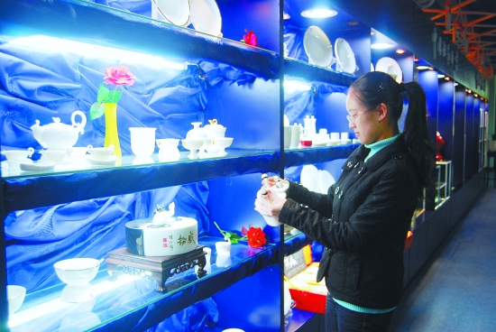 德化出臺政策鼓勵發(fā)展日用瓷、禮品瓷,幫助企業(yè)創(chuàng)新轉型。圖為消費者在選購德化日用瓷。