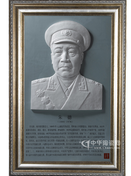 該系列浮雕壁飾共150多幅,不僅規(guī)模宏大,而且設(shè)計新穎,填補了世界瓷塑藝術(shù)領(lǐng)域的空白。在此先談?wù)劻纸ㄈ?ldquo;十大元帥”之朱德。朱德元帥為祖國的解放事業(yè)立下了汗馬功勞,是開國功臣,為后人所敬仰。林建全以建白瓷浮雕壁飾的形式完美逼真地再現(xiàn)出朱德元帥的風(fēng)范,這是一種獨創(chuàng)的形式,以前從來沒有也沒有人創(chuàng)作過,沒人指導(dǎo),所以起步階段非常困難。
