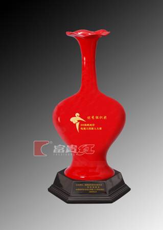 張小琴老師對徐少東先生的藝術(shù)創(chuàng)新精神及他所研制的“高溫紅釉瓷”、“天石釉瓷”、“天涵釉瓷”、“君語釉瓷”這些陶瓷新工藝贊賞有加,對“高溫紅釉瓷”更是愛不釋手,并且認(rèn)為將“富貴紅”陶瓷作為本次主持人新人大賽的獎杯使大賽大為增色。