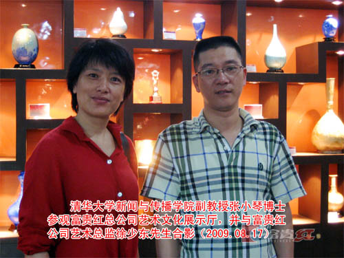 作為大賽評委之一的中央電視臺《心理訪談》欄目主持人、1996年全國電視節(jié)目主持人大賽金獎及2001年“金話筒獎”獲得者、現(xiàn)清華大學(xué)新聞與傳播學(xué)院副教授張小琴老師于8月17日慕名來到中國瓷都·德化,參觀了福建省富貴紅文化發(fā)展有限公司陶瓷藝術(shù)文化展示廳。富貴紅公司官窯文化研究所藝術(shù)總監(jiān)徐少東興致勃勃地向張小琴老師講述德化陶瓷悠久的歷史及富貴紅陶瓷藝術(shù)的工藝特色,并逐一講解每一種工藝品類的工藝內(nèi)涵及作品的創(chuàng)作構(gòu)思。
