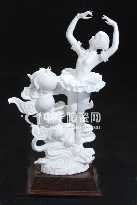 《好運(yùn)來》以德化特有的“中國白”為胎體,瓷質(zhì)堅(jiān)實(shí)厚重,瓷色潔白如雪,溫潤如玉,透明度好,是德化白瓷的上等珍品瓷種,榮獲“第七屆中藝杯”金獎(jiǎng)。作品精雕細(xì)刻,造型和諧,祥云托著六個(gè)燈籠高高掛起,少女踮起腳尖隨著優(yōu)美旋律而舞動(dòng),意境深邃、超凡脫俗。六個(gè)燈籠代表60周年,祥云象征著吉祥,承載著幾千年的中國文化,具有代表性的中國文化符號(hào)。祥云托起燈籠蘊(yùn)涵著蘇志強(qiáng)對(duì)祖國騰飛的期盼。少女的翩翩起舞,舞的是喜慶新中國成立一甲子年,舞的是中國60年來的喜和淚,舞的是2009年是我們繼往開來的一年……少女身上洋溢的氣息也正影射著祖國的年輕,祖國也正處于朝氣蓬勃、年輕氣盛的時(shí)期,無人可以想象祖國的未來將是多么輝煌!