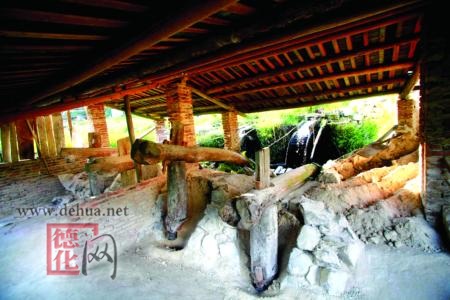 水車帶動(dòng)木杵將瓷土研碎,這種水車在德化留存極少