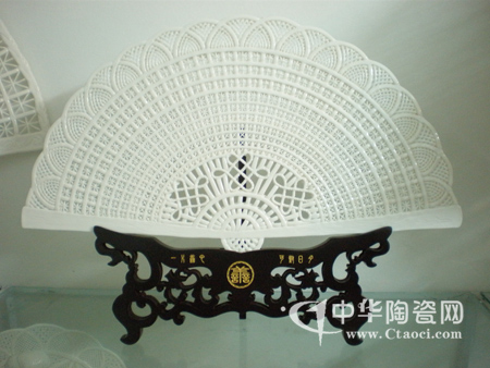 源何有制瓷扇的念頭?她說:“在一次與朋友的聊天中,偶然聊到中國傳統(tǒng)的扇,材料有竹、木、紙、扇、象牙、飛禽翎毛等,各式各樣……”她突發(fā)奇想,何不做把瓷扇!想到、說到、做到,鄭麗玲回家后立馬行動,開始構(gòu)思如何用陶瓷做扇。功夫不負(fù)有心人,經(jīng)過幾天的努力,第一把瓷扇終于出世。她說:“雖然自己對瓷條編織手藝非常熟悉,但用瓷條來編扇面,卻不容易,坯體不能動,一被風(fēng)吹,就很容易干裂,而扇面薄,裂了就難以修復(fù)。”她說時臉上洋溢的笑容可以感知她對自己作品的喜愛及背后付出的汗水。