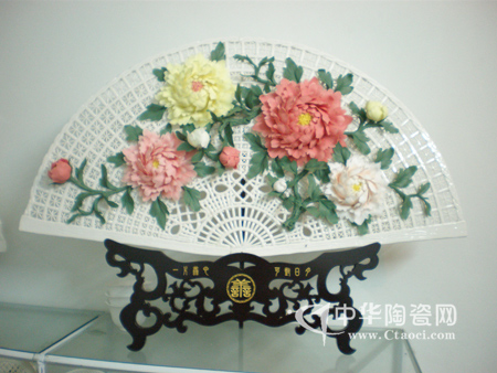 鄭麗玲追求新時代的形式美感,用現(xiàn)代瓷編將古代文明——扇文化與現(xiàn)代藝術(shù)承接起來,創(chuàng)造出純手工編織的瓷扇,填補(bǔ)了德化陶瓷史上的空白。瓷扇,精于制作巧奪天工,采用晶瑩玉潤、潔白無瑕素稱的“中國白”的德化瓷土作原材料,大膽使用了非常涓細(xì)的瓷條加以竹編手法來編織和體現(xiàn)。足以亂真的菊花、雍容富貴的牡丹花、傲骨雪梅,盛放在一把把舒展開的白色瓷扇扇面上,精致典雅,散發(fā)著儒雅氣質(zhì),不禁令人贊嘆!