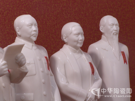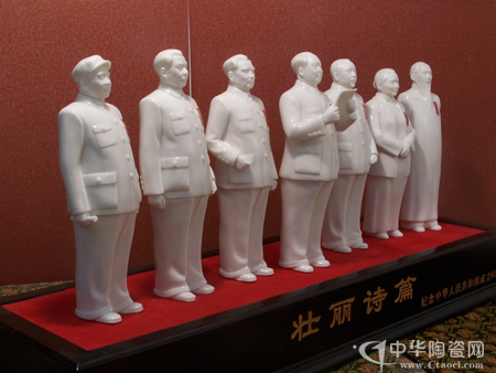 《壯麗詩篇》以德化特有的“中國白”瓷泥為材料,采用寫實(shí)與概括相結(jié)合的表現(xiàn)手法,歷時近一年才創(chuàng)作完成。人物高30厘米,從左到右依次是:朱德、劉少奇、周恩來、毛主席、李濟(jì)深、宋慶齡、張瀾。整組作品人物形象惟妙惟肖、栩栩如生,眼睛正視前方,神情堅定,從容而莊重,極具神韻。藝術(shù)再現(xiàn)了1949年10月1日,毛澤東與開國元勛們站在天安門城樓上,由毛澤東宣布中華人民共和國成立的壯麗情景。(小俠、小米)