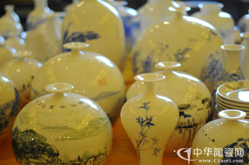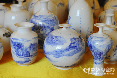 海西騰飛,當代國畫名家創(chuàng)作行其中一站走進中國瓷都德化,在福建德化宏晟陶瓷公司創(chuàng)作室里,來自7個省份10多位當代國畫名家在精美的陶瓷坯體上揮毫創(chuàng)作。多天來,10多位當代國畫名家已取得喜人的成果,一件件精美的作品已成功出爐,清新淡雅、精美絕倫。據(jù)福建美術(shù)出版社社長施群介紹說,這些作品將要巡回展覽及出版畫冊。