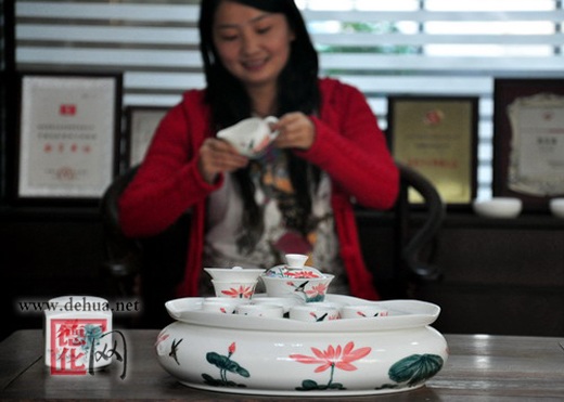 記者看到,“歲寒四君子”的梅、蘭、竹、菊成為德化瓷器創(chuàng)作的新題材。一套普通的茶具,畫上傲霜斗雪的梅花,便具有了“梅花歡喜滿天雪,留取清白在人間”的雋永意境,在休息喝茶之中起到潛移默化、潤物無聲的效果。孤標亮節(jié)的菊花、剛直豪邁的青松與德化陶瓷相結(jié)合,成了中華民族不畏強權(quán)、不屈不撓精神的體現(xiàn)。高雅有節(jié)的綠竹,激勵著黨員干部要像竹子一樣虛懷若谷、剛勁有節(jié)。繪有“出污泥而不染,濯清漣而不妖”的荷花圖案的杯子,配以“清茶甘甜可口,廉氣清香潤心”的格言警句,成為黨員干部作為激勵自己潔身自好的座右銘。