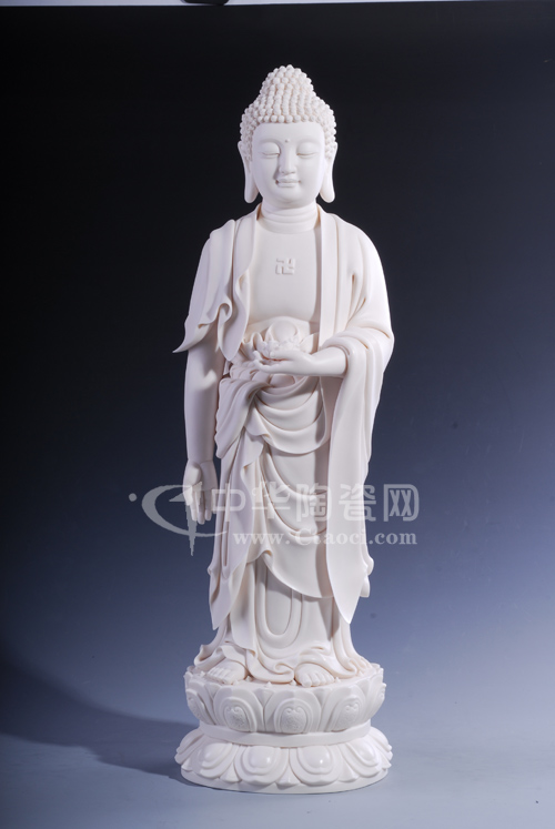 在連紫華的作品及和他的交流中,我們可以找到連紫華他所從事傳統(tǒng)瓷塑的那份凈與禪的感覺。連紫華說:“做傳統(tǒng)工藝,不光要有扎實的基礎(chǔ)功,還要人的心能靜下來做,是不是能靜心下來做,那這種感覺就直接體現(xiàn)在的作品上。假設(shè)我做的一尊釋迦摩尼佛的像來說,就先要了解釋迦摩尼佛在佛教里面的歷史背景。了解完,我們就知道釋迦摩尼佛是慈祥、莊嚴,但是要略帶一點威嚴的感覺,這跟他的身份背景有關(guān)系。我在創(chuàng)作過程中,特別是寫臉部表情的刻畫,我就很注意到這些細節(jié)。那些細節(jié)的體現(xiàn),你平常沒有用心,你是感覺不出來的。”