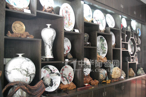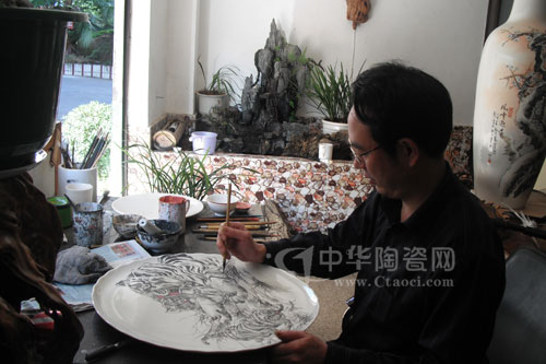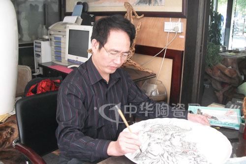 陳行一介紹說,陶瓷繪畫受工藝、器型、材質(zhì)等方面的制約,與宣紙相比難度要加大,要設(shè)法發(fā)掘陶瓷繪畫潛在的表現(xiàn)力,必須結(jié)合器形進(jìn)行合理的構(gòu)思、布局,揚(yáng)長(zhǎng)避短,讓陶瓷亮麗的材質(zhì)與畫面有機(jī)的結(jié)合起來,在有限的瓷器里創(chuàng)作出無限的境界。還介紹說,繪畫講究筆墨線條等的對(duì)比變化,例如粗細(xì)、疏密、虛實(shí)、濃淡等,從而產(chǎn)生線條的節(jié)奏韻律,講究“氣韻生動(dòng)”、“以形寫神”、“骨法用筆”,以渾然天成、本色自然、含蓄蘊(yùn)藉為品位,遵循“作品妙在似與不似之間,大似為媚俗,不似為欺世”的創(chuàng)作原則。