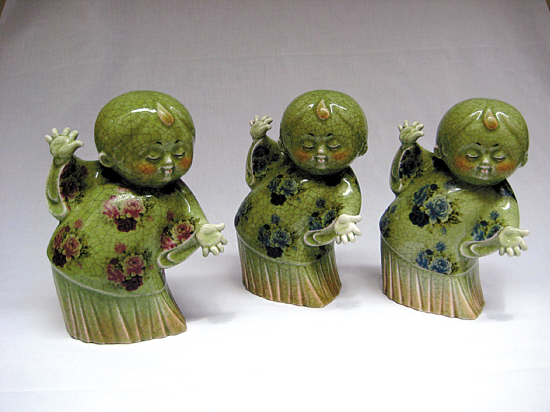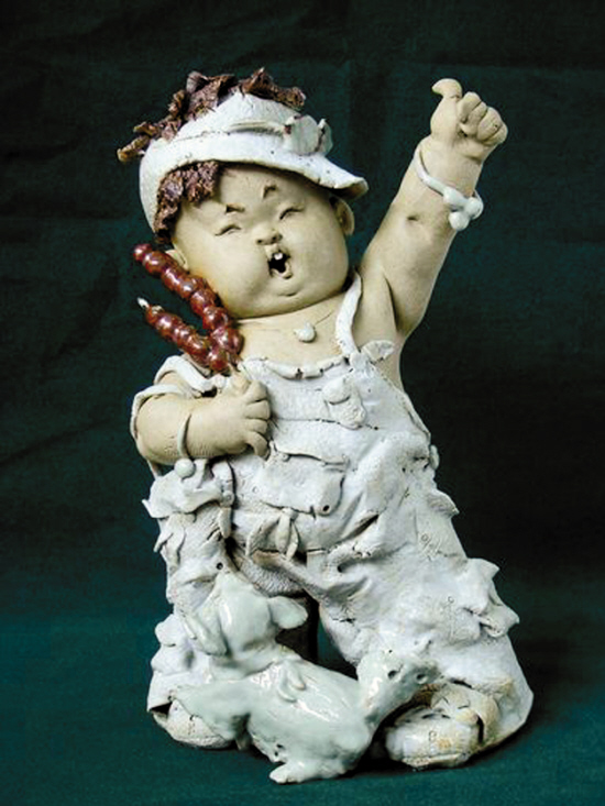 年輕一輩的工藝師突破潮州瓷塑傳統(tǒng)的觀音像、佛像、仕女等造型,使瓷塑“下凡”到人間,展示出瓷塑的個性與活力一面。70后的陳震“中國娃”系列之《好味道》尤其傳神。這個小瓷孩竟然剛問世即被搶購一空,原作孤品市價直逼8000元。師從中國工藝美術(shù)大師莊稼先生的陳響代表作《童舞》價超3000元。獨特個性風(fēng)格的掛飾《傲骨春》(吳映釗作)原作孤品現(xiàn)升至6.5萬元。