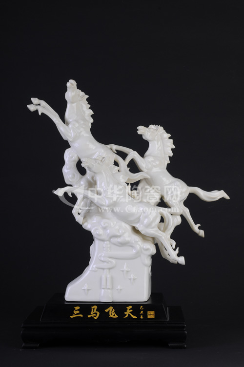 神舟七號載人航天飛行的圓滿成功終于現(xiàn)實了中華民族漫步太空的夢想,為中華民族歷史譜寫了美好篇章。福建省德化縣藝韻陶瓷研究所副所長、福建省工藝美術(shù)師林國龍以“中國白”瓷雕的形式永遠記下了這一輝煌的時刻——《三馬飛天》。