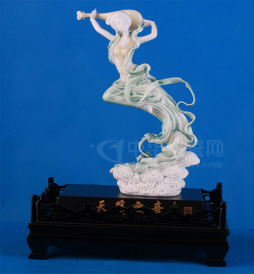 陳列在藝韻瓷莊展廳的瓷塑精品——《天籟之音》就是德化瓷塑精美材質(zhì)與高難度工藝的一個(gè)很好的表現(xiàn)。此作品系由福建省德化縣藝韻陶瓷研究所副所長、福建省工藝美術(shù)師陳能謨所精心研究創(chuàng)作,以中國白瓷與高溫窯變結(jié)晶釉相結(jié)合,配上飛天優(yōu)雅的高難度造型,更是把陶瓷的燒制技術(shù)推上一個(gè)新的臺階,在第五屆福建省工藝美術(shù)精品“爭艷懷”大賽中榮獲優(yōu)秀獎(jiǎng)。
