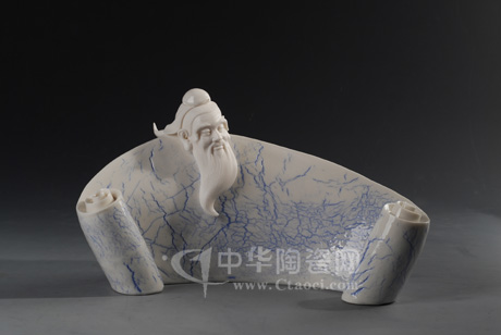 世界華人杰出藝術(shù)家、高級工藝美術(shù)師、阿凡提陶瓷藝術(shù)研究所所長徐才提精心創(chuàng)作的《孔子》中國白瓷雕,工藝精湛、精雕細(xì)琢、立意高遠(yuǎn),構(gòu)思新穎。作品首創(chuàng)以中國特有的卷書為主體,獨(dú)家采用研究所最新研制成功的窯變青花瓷為背景,人書合一、妙趣天成,創(chuàng)造性的表現(xiàn)了孔子“學(xué)而不厭,誨人不倦”的光輝形象,生動(dòng)逼真,別具一格。中華傳統(tǒng)文化元素在作品中都淋漓盡致地得到體現(xiàn)。窯變青花藍(lán)釉代表海洋,象征著猶如大海般的淵博知識。