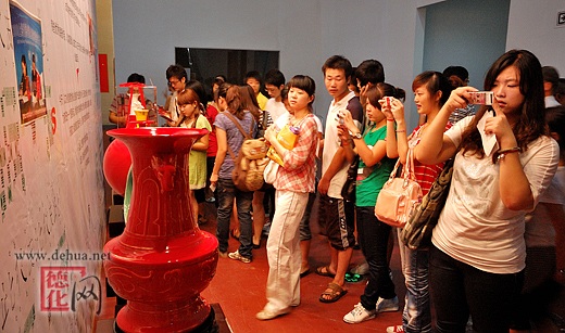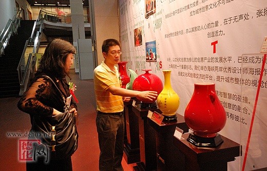 9月10日,由福建省美術(shù)家協(xié)會、廈門市文化局、福州大學(xué)廈門工藝美術(shù)學(xué)院聯(lián)合舉辦的2010年海峽兩岸優(yōu)秀設(shè)計師海報作品邀請展在廈門市美術(shù)館隆重舉行,大陸、臺灣、香港等一百多名優(yōu)秀設(shè)計師的作品參加了展覽。展覽大廳人群擁擠,現(xiàn)場熱鬧非凡。來自中國瓷都&S226;德化的福建省富貴紅文化發(fā)展有限公司應(yīng)主辦方邀請,以陶瓷藝術(shù)品現(xiàn)場展覽的形式參與互動。