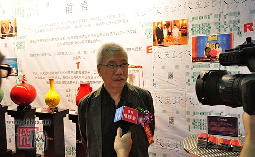 國際著名的華人設(shè)計大師、汕頭大學(xué)長江藝術(shù)設(shè)計學(xué)院院長、國際平面設(shè)計聯(lián)盟AGI委員、展覽會特別顧問靳埭強教授,臺灣師范大學(xué)藝術(shù)設(shè)計教授、臺灣海報設(shè)計協(xié)會秘書長施令紅女士,在觀看“富貴紅”陶瓷藝術(shù)品后,就陶瓷藝術(shù)與海報藝術(shù)是否存在互融性問題接受了電視臺記者的采訪。靳埭強教授肯定了兩種不同藝術(shù)形式的現(xiàn)場互動很有創(chuàng)意。他說:中國陶瓷文化歷史悠久,德化作為一個古老的瓷都,應(yīng)該也有其深厚的藝術(shù)文化積淀,富貴紅陶瓷藝術(shù)品的精美也可以說是這種積淀在當(dāng)代的必然性延續(xù)和迸發(fā)。藝術(shù)是自由的、開放的、包容的,對于陶瓷藝術(shù)這種工藝傳承性很強的藝術(shù),同其它的藝術(shù)門類一樣,也需要不斷的借鑒和創(chuàng)新。借鑒、創(chuàng)新的渠道很多,就看你有沒有勇氣。比如說今天,德化的陶瓷能以這樣的一種形式引發(fā)設(shè)計師的關(guān)注,關(guān)注之下可能產(chǎn)生的是一些藝術(shù)上的探討,探討就有可能在實踐上探索、創(chuàng)新。海報作為一種張貼公共場所的信息傳播媒介,其獨特的視覺符號傳達(dá)出思想觀念、價值取向和人文精神的主題,引發(fā)公眾的公共意識和公益行為。不管是海報設(shè)計藝術(shù),還是陶瓷藝術(shù),它們的精神指向是一致的,只不過是表現(xiàn)的媒介不一樣而己。