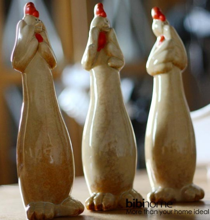 超可愛的造型,三個(gè)陶瓷小雞憨態(tài)可掬,或害羞狀、或驚訝狀、或掩面,直直站立,肥肥的身子,天真浪漫?戳怂鼈,所有的疲倦一掃而光了,放在居室里面,能給屋子帶來(lái)充分的靈性。