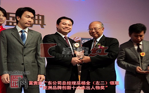 據(jù)悉,本次有數(shù)家福建省的企業(yè)入圍獲獎,其中來自中瓷都&<2539;德化的陶瓷工藝品研發(fā)制作企業(yè)福建省富貴紅文化發(fā)展有限公司獲得二個獎項:富貴紅品牌創(chuàng)始人徐少東獲“亞洲品牌創(chuàng)新十大杰出人物”,福建省富貴紅文化發(fā)展有限公司獲“中國(行業(yè))十大創(chuàng)新品牌獎”。