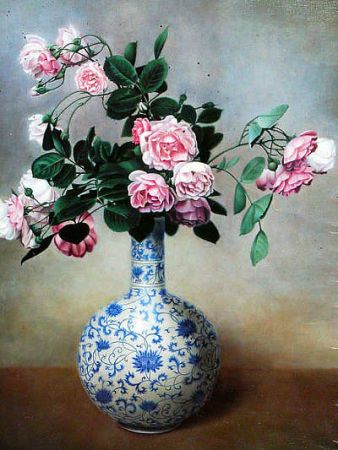玫瑰花的光影變換與青花瓷瓶的隱約釉痕,靜靜地吸引著人們的目光。青花或硬朗明快,或細膩婉約的線條,給視覺旅程加了停頓的休止符。