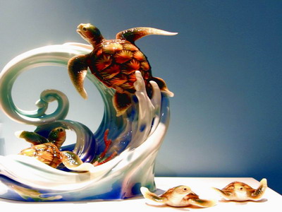 今日在上海世博會(huì)城市最佳實(shí)踐區(qū)城市“倫敦零碳館”的一樓展廳,一對(duì)栩栩如生的朱?被燒制成一只精美的法蘭瓷器擺在大廳中央,日本館館長(zhǎng)江原規(guī)由,景德鎮(zhèn)陶瓷學(xué)院院長(zhǎng)秦錫麟與國(guó)家級(jí)工藝美術(shù)大師戴榮華,用手中的畫(huà)筆在磁片上勾勒美麗的朱?,借這個(gè)瀕臨消失的珍貴物種,宣傳重視環(huán)保,愛(ài)護(hù)自然的理念,這是臺(tái)灣法蘭瓷公司被倫敦零碳館邀請(qǐng)舉行的一場(chǎng)法蘭瓷展覽活動(dòng)一角。