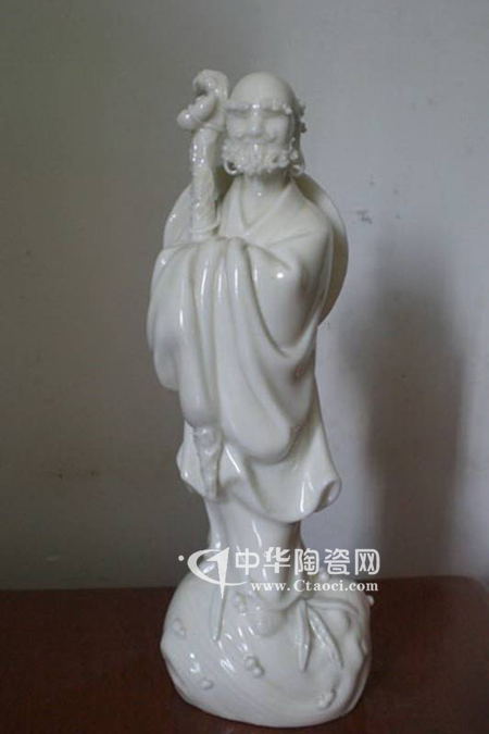 其次,因其產(chǎn)生的那個特殊年代,瓷泥都是源于德化本地優(yōu)質(zhì)的高嶺土,在制作工藝、造型、繪制等方面均非常精致,就其藝術(shù)價值來說,它并不比清三代的官窯瓷器遜色。這一尊《達摩》,系由中國工藝美術(shù)大師陳其泰所創(chuàng)作。作品整體造型和諧、豐滿,細看胎質(zhì)細膩,如脂似玉,瑩潤如水,線條優(yōu)美柔和。那衣褶自然,遒勁圓潤、深淺得宜,富有節(jié)奏感,似臨風(fēng)飄拂,顯得靜中有動,臉部神情刻畫得栩栩如生,極為傳神,展示出了創(chuàng)作者高超的藝術(shù)造詣。