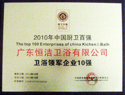 恒潔衛(wèi)浴入選“2010年中國廚衛(wèi)百強(qiáng)企業(yè)” 一方面表明恒潔衛(wèi)浴的行業(yè)地位得到了行業(yè)內(nèi)部和消費(fèi)者的充分肯定,另一方面也是恒潔衛(wèi)浴多年來孜孜不倦、嚴(yán)格要求的品質(zhì)見證。