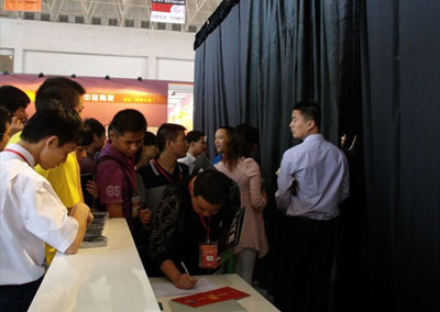 蒼勁奔放的音樂扣人心弦,隨著音樂聲的升高,一束綠光投在關(guān)閉的黑紗門簾上,一個高挑曼妙的身影投在紗簾上,動人的現(xiàn)代魅舞表演穿插在瑪緹瓷磚展示過程中。參展的客商、媒體、同行,無一不對“瑪緹現(xiàn)象”嘖嘖稱奇、夸贊。“很神秘,瑪緹真的很有創(chuàng)意很特別呀”進(jìn)來看磚的客商直言道。充滿創(chuàng)意的瑪緹展廳,成為了華夏陶瓷城所有展位里人氣最旺的一個展廳,一撥一撥的客戶掀簾而入。