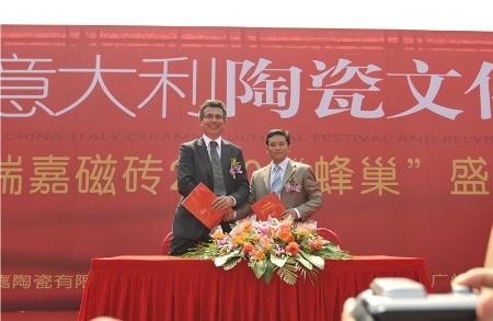 二是,用作為此次活動的承辦方佛山寶嘉陶瓷企業(yè)董事總經(jīng)理馬暉的話說,是“能夠與當今世界第一建陶強國意大利建立戰(zhàn)略合作伙伴關系甚感殊榮。并承諾,還將繼續(xù)聯(lián)合各方資源,開展此類中意文化交流活動,為加深中意兩國的文化認識、促進企業(yè)間的互信往來,創(chuàng)造更多的交流機會。同時,也為佛山建陶產(chǎn)業(yè)總部經(jīng)濟的發(fā)展添磚加瓦,貢獻自己的一份力量。”