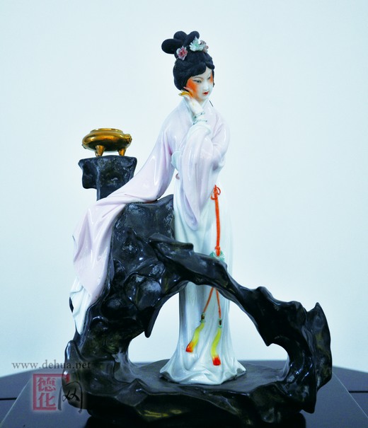 當代著名雕塑藝術家、工藝美術大師王則堅抓住了一聽傾心定終生這一愛情故事最精彩的瞬間,創(chuàng)作出瓷塑作品《文君聽琴》,把卓文君那一見鐘情的澎湃心潮恰到好處地表現(xiàn)出來。你看,文君發(fā)髻簪花,左手輕抬,半掩著嬌羞、微紅的面頰,右手長袖拂地,仔細傾聽著那支《鳳求凰》的曲子,面部表情沉靜,似凝神傾聽,又好像略有所思,整個氛圍極其沉靜,人們卻能從她的神態(tài)中,看到她內心一見鐘情、一聽傾心的感覺在涌動,看到她那被琴聲激起的澎湃心潮,把一個千年的愛情故事塑造得生動形象,呼之欲出。