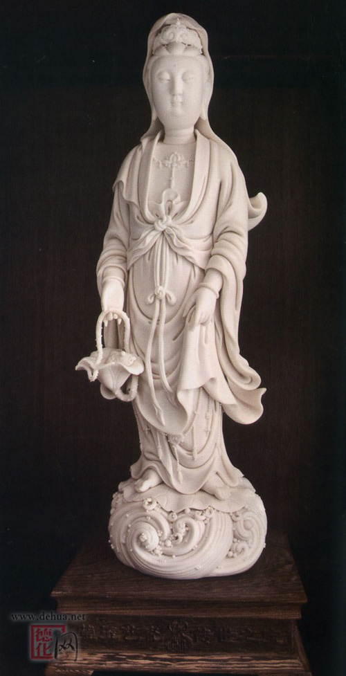 而與其他雕塑相比,德化瓷塑也更具挑戰(zhàn)性。因?yàn)樗粌H是考驗(yàn)雕塑的功力,還要考驗(yàn)“水火之技”——工藝師要考慮的不僅是雕塑的表現(xiàn)手法,更要重視瓷塑進(jìn)窯爐后所承受的火候。因?yàn)檎惩帘旧淼纳炜s性強(qiáng),成坯燒造后,有的甚至可能達(dá)到近的收縮,一旦處理不好,就極可能發(fā)生變形。所以在制坯燒造時(shí)胎體的薄厚是_古均勻、各個(gè)部件晾干是否一致,胎體是否有瑕疵,燒的速度是否合適等因素都十分重要,一旦出現(xiàn)紕漏就可能導(dǎo)致瓷器變形、開(kāi)裂,成為廢品。即使到了現(xiàn)代這樣的高科技社會(huì),一件完美的瓷塑藝術(shù)品仍然需要工藝師的全程嚴(yán)密把關(guān),就連蘇清河這樣的大師級(jí)人物也不敢有絲毫馬虎。好不容易將瓷燒成后,傳統(tǒng)的德化人還會(huì)做一件非常殘忍的事情——只要有一點(diǎn)瑕疵都必須將成品銷毀。有缺憾的就不能稱之為“德化瓷”!因而蘇清河大師也特別提醒各位藏友:收藏德化白瓷一定要格外愛(ài)惜,這些精美的藝術(shù)品無(wú)不是經(jīng)歷幾十道工序,耗費(fèi)制瓷人無(wú)數(shù)心血,熬過(guò)水火人工十幾道考驗(yàn)才來(lái)到人們手中。這些雕塑藝術(shù)品的手指、衣紋、珠粒、牙齒等細(xì)節(jié)部分都需要加倍小心保護(hù)。然而正因?yàn)榇伤懿灰妆4娴奶匦裕舾赡旰,您?xì)心保藏完整的瓷塑,說(shuō)不定就能成為世上獨(dú)一無(wú)二的孤品!
