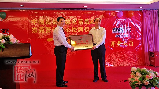 廣東省商業(yè)聯(lián)合會(huì)秘書長郭玉琨;深圳市政協(xié)原副主席、深圳市企業(yè)聯(lián)合會(huì)、深圳市企業(yè)家協(xié)會(huì)會(huì)長吳井田;東莞市政協(xié)秘書長、辦公室主任冉紅宇;深圳市商業(yè)聯(lián)合會(huì)秘書長楊秋生等領(lǐng)導(dǎo)及社會(huì)各界出席授牌儀式,德化縣人大常委會(huì)副主任林華武為東莞營銷中心授牌。