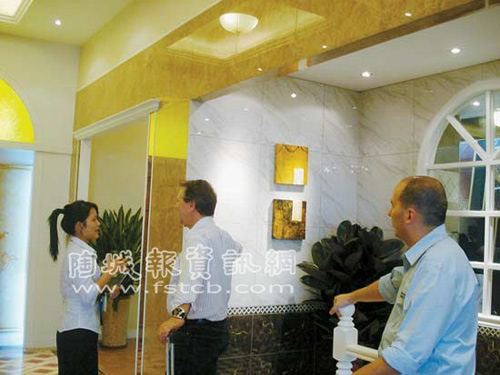 據(jù)記者所知,金尊腰線做得相當(dāng)成功,業(yè)內(nèi)許多一流大企業(yè)都找它配套腰線、花片,做得這么好為何還要轉(zhuǎn)行?李總告訴記者:其一,造腰線是典型的勞動(dòng)密集型,主要靠手工操作,用人多,而勞動(dòng)力成本近年正持續(xù)上漲,改做拋晶磚可以采用更多的機(jī)器設(shè)備,可以更好地提高產(chǎn)品的技術(shù)含量;其二,做腰線做得再大也始終是為別人配套,沒(méi)有自己的品牌,轉(zhuǎn)做拋晶磚才便于創(chuàng)立、打造、提升自有的品牌;其三,是看好拋晶磚的發(fā)展前景,有機(jī)會(huì)就此干出一番事業(yè)。與李敏輝合作多年的另一位總經(jīng)理陳英恒亦“英雄所見略同”,于是晶尊拋金玉石這個(gè)新品牌于2009年應(yīng)運(yùn)而生了。