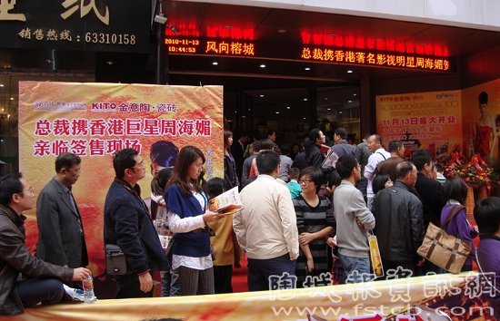 金意陶5年銷售增長12倍,創(chuàng)造了陶業(yè)增長的奇跡,從而創(chuàng)造了一個新的詞匯:“金意陶速度”。2010年,金意陶瓷磚終端銷售方式向品牌式營銷轉(zhuǎn)變,全國網(wǎng)絡(luò)秒殺、明星助陣大型促銷、開展設(shè)計師大賽等,一連串大手筆事件引起公眾的轟動。福州思想館開業(yè)當(dāng)天,金意陶國內(nèi)營銷中心總經(jīng)理張念超先生也現(xiàn)身思想館,出席開業(yè)剪彩儀式并表示金意陶的成績是與消費者的支持分不開的,為回報消費者,承諾今天會有更低的總裁簽售折扣。如此重磅的消息頓時在消費者中炸開了鍋,場面一度瘋狂失控,簽售大廳被擠得水泄不通,組織方不得不抽出保安來進行協(xié)調(diào)。