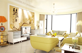 如今,海意藝術(shù)建材公司把中國壁畫的發(fā)展納入自身的發(fā)展使命中,把壁畫藝術(shù)融入家居裝飾中。也為了整體家居陳設(shè)的環(huán)境氣氛考慮,海意在壁畫的形式上作了適度的變形和裝飾性的線條、色彩處理,讓壁畫語言和壁畫文化在空間中無聲傳播。