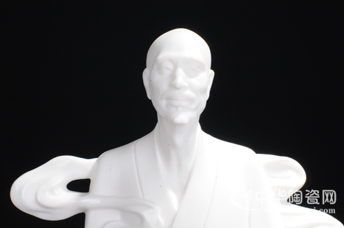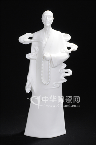 這是趙樸初先生對(duì)弘一法師的高度評(píng)價(jià),顏松柳有感于此引發(fā)創(chuàng)作出瓷塑作品《一輪明月》。作者采用夸張抽象的表現(xiàn)手法,簡(jiǎn)潔明了的線條,意識(shí)性地刻畫出清瘦但精神十分抖擻的弘一法師的形象。弘一法師手持佛珠,心底默念,在體現(xiàn)出其詩(shī)人、書(shū)法家、教育家等文人氣質(zhì)的同時(shí)也表達(dá)了其苦心向佛,皈依自心,超然塵外的佛學(xué)心理。肩帶有祥云,飄渺間展示出弘一法師一生的傳奇色彩,令人意猶未盡。讓我們將《一輪明月》請(qǐng)回家,把中國(guó)近現(xiàn)代佛教史上最杰出的一位高僧請(qǐng)回家,讓他的大智慧帶給您聰明財(cái)富。
