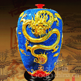 德化瓷器·世紀(jì)祥龍漆線雕藍(lán)金錦瓶