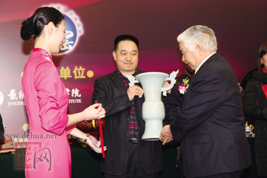 原全國政協(xié)副主席王文元向“當(dāng)代十大名窯”獲獎?wù)咧袊钻惾屎nC獎