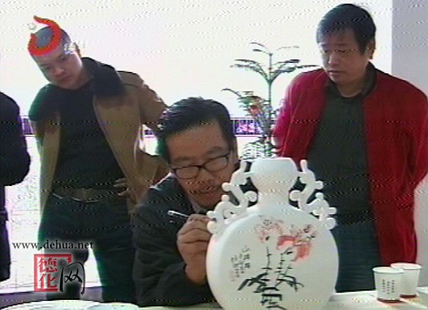 [陜西藝術(shù)學(xué)院副院長、中國美術(shù)家協(xié)會會員:鄭培熙:留白就是一種藝術(shù),你們這邊的優(yōu)勢就是這個特別白這個陶瓷,顏色特別白,我們繪畫也是用紙,用白紙,中國畫也是在白的上面,可以表現(xiàn)出很豐富的東西。]