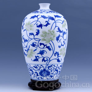 袁述凡大師手繪·青花釉下五彩纏枝牡丹花瓶