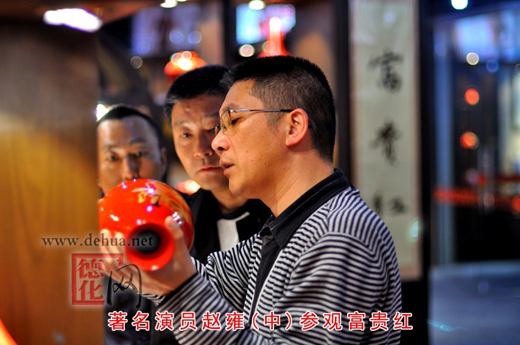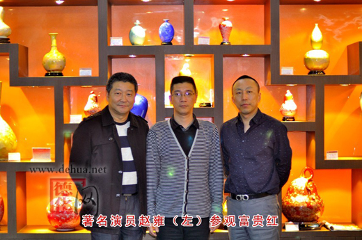 3月21日,福建省富貴紅文化發(fā)展有限公司陶瓷文化展示廳又迎來了一名貴賓——國(guó)內(nèi)著名的影視演員“賀龍”趙雍。富貴紅公司藝術(shù)總監(jiān)徐少東陪同參觀。